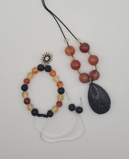 Ado/Adulte - Citrine - Cornaline - Pierre de lave - Réglable / Elastique (Bracelet)